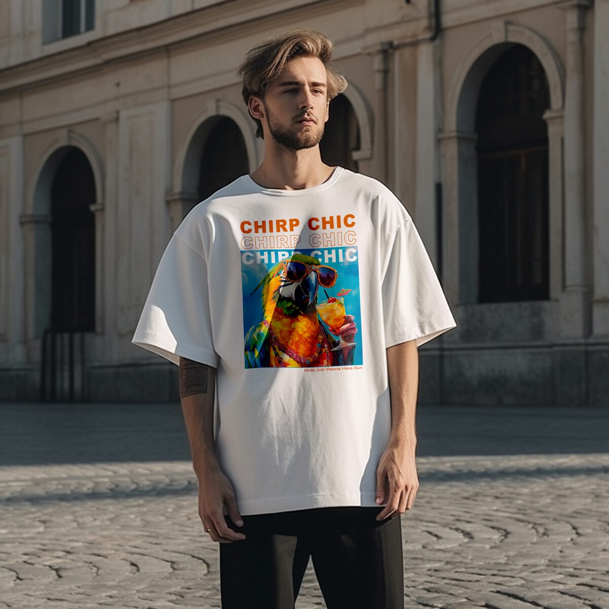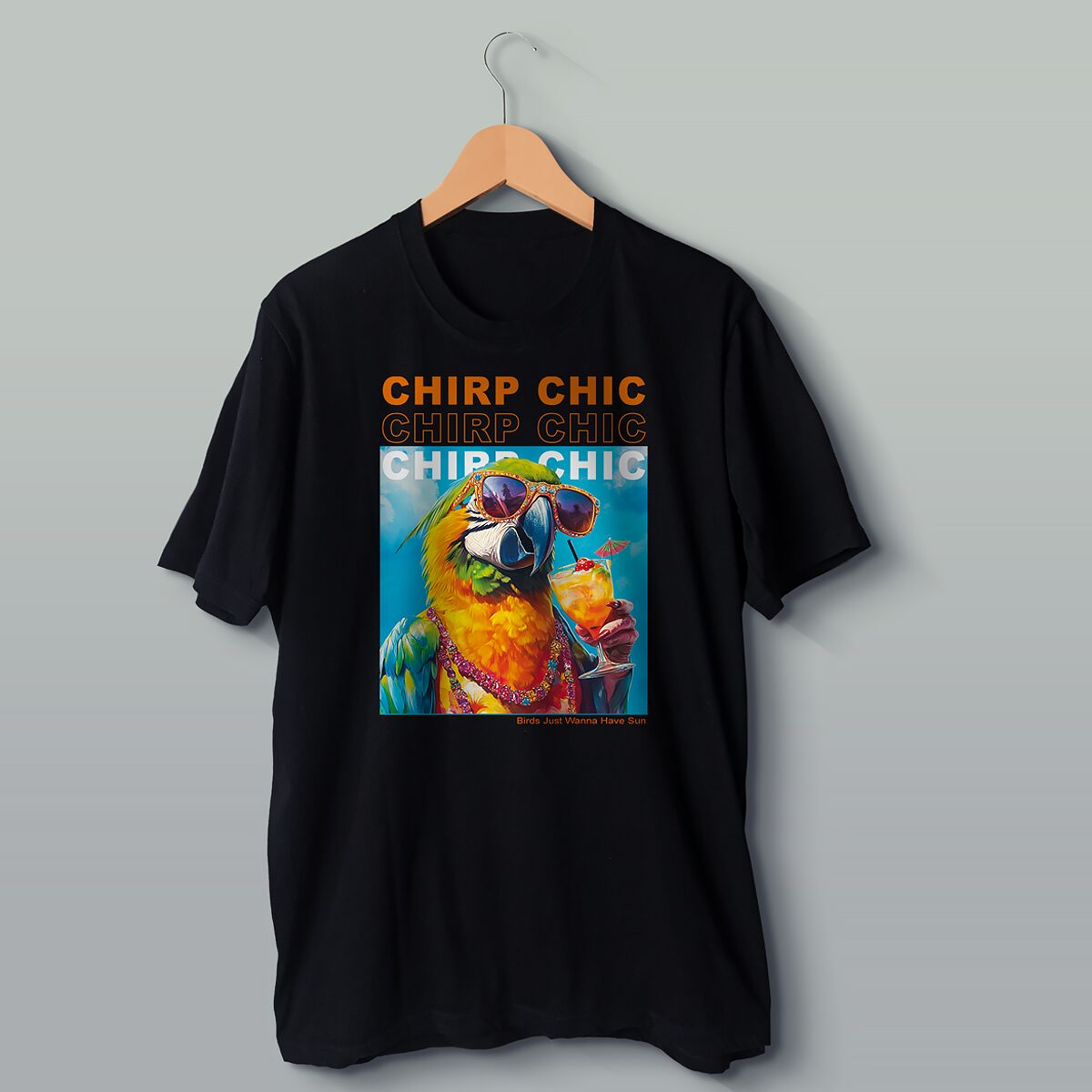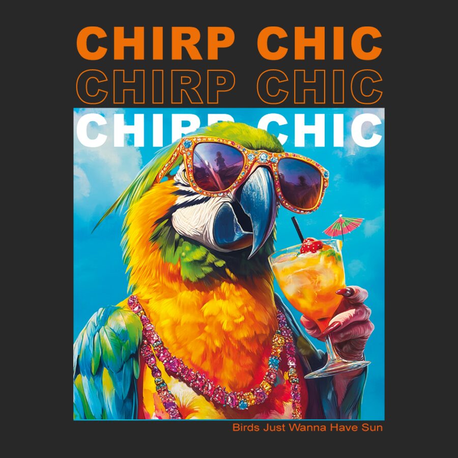 Dieses hochwertige Unisex-T-Shirt zeigt einen farbenfrohen Papagei, der Cocktails genießt und Spaß hat. Mit den frechen Sprüchen „Chirp Chic“ ist dieses T-Shirt perfekt für alle, die Mode lieben und ihren Sinn für Humor zeigen möchten.